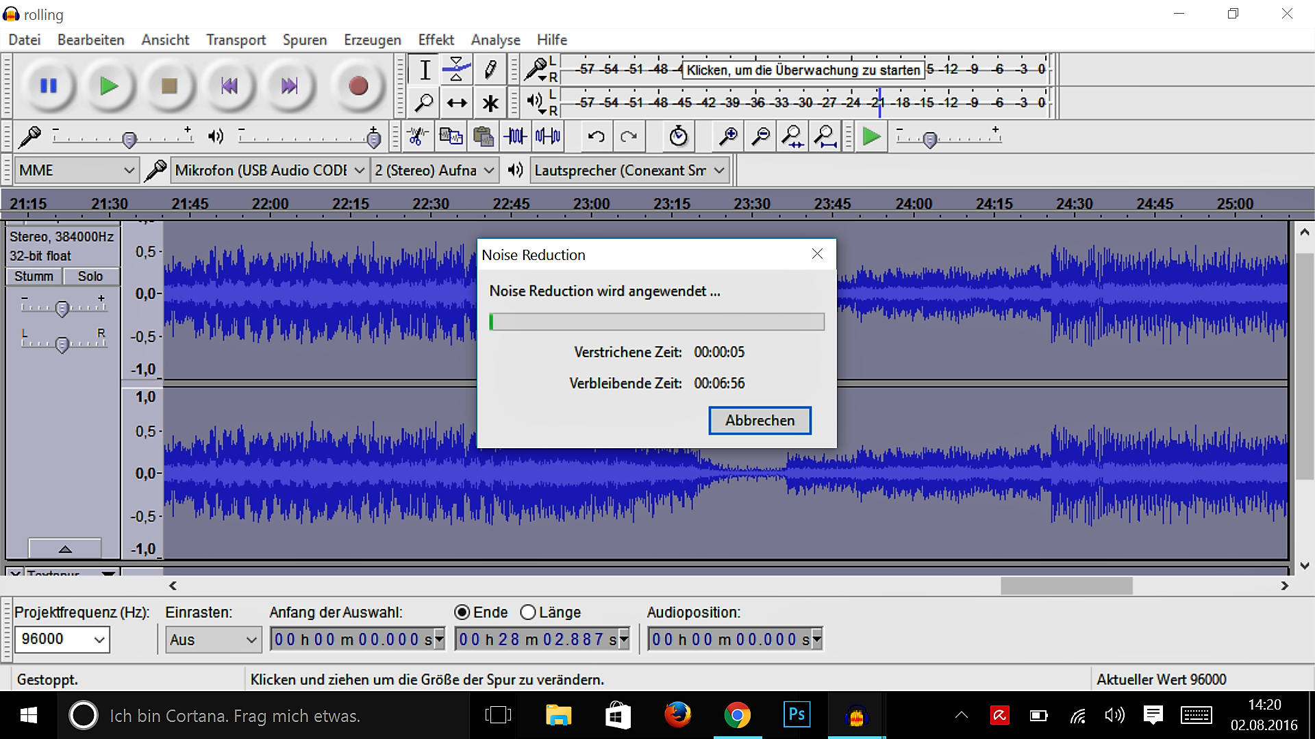 Rauschverminderung bei Audacity